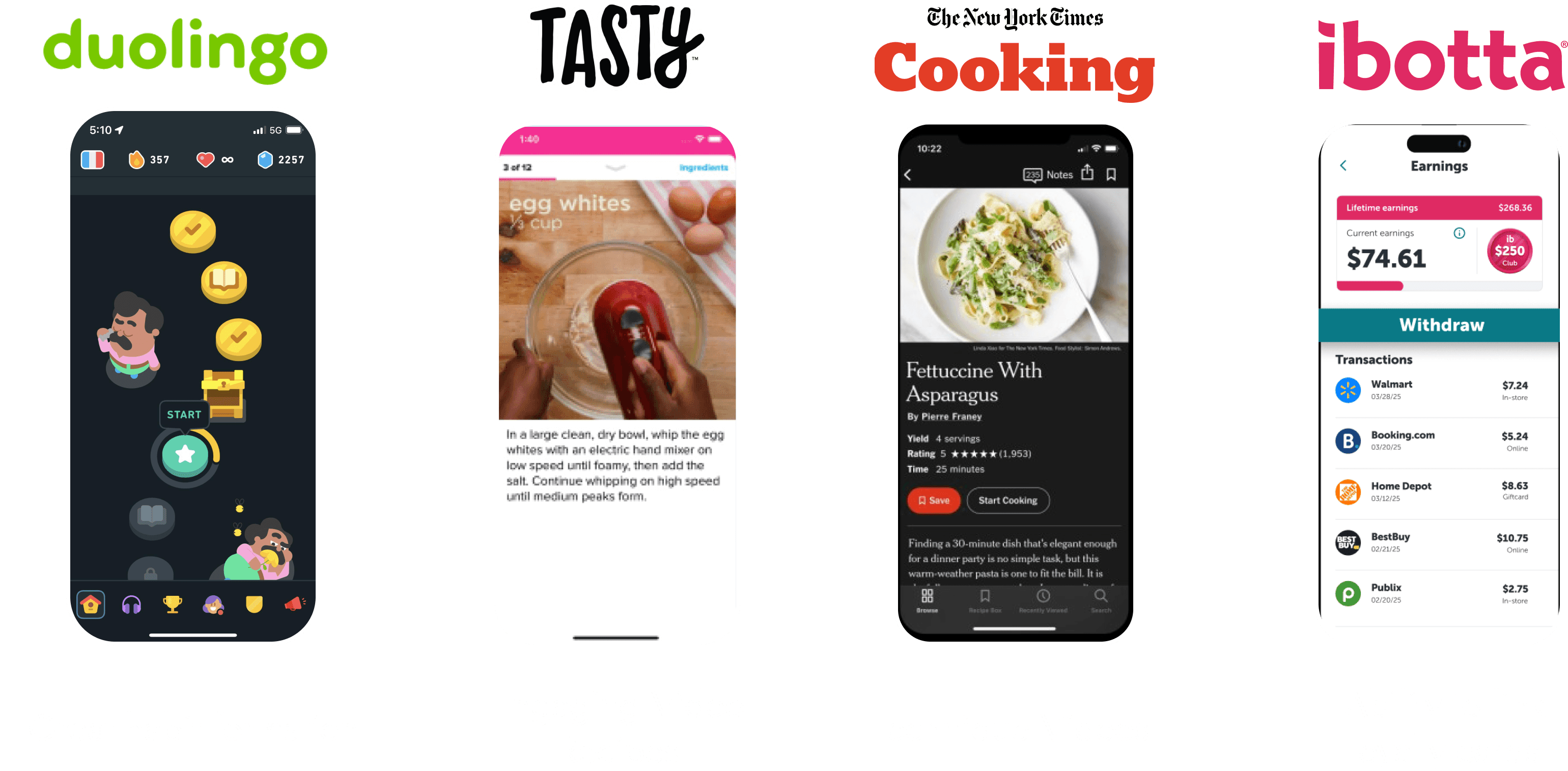 While each app has its strengths, none of our interviewees reported using them—except for one who had tried Zest. Among all competitors, Zest stood out as the most playful in both its UI and its educational, game-like format. This insight pointed us toward a clear direction: designing at the intersection of motivation, time, cost, and enjoyment.