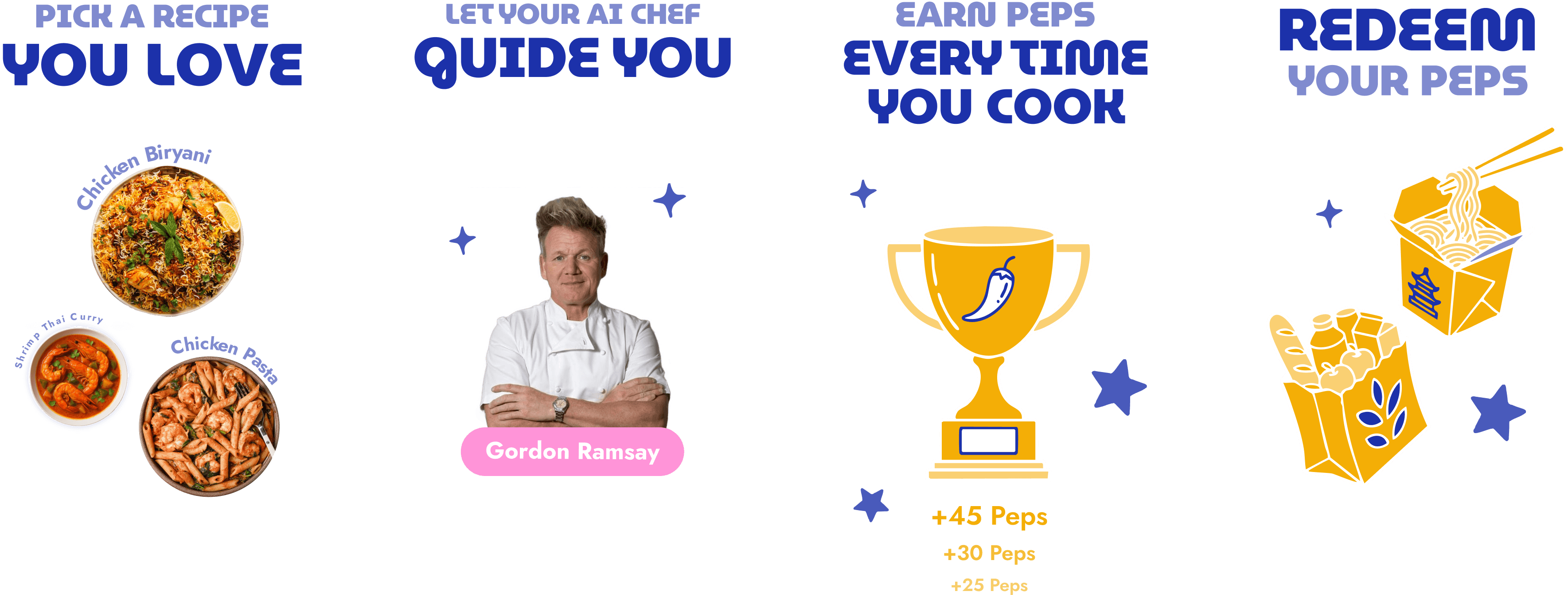 Peps is a cook-along app that uses AI guidance and rewards to help busy users turn everyday cooking into a motivating, time-friendly experience.
