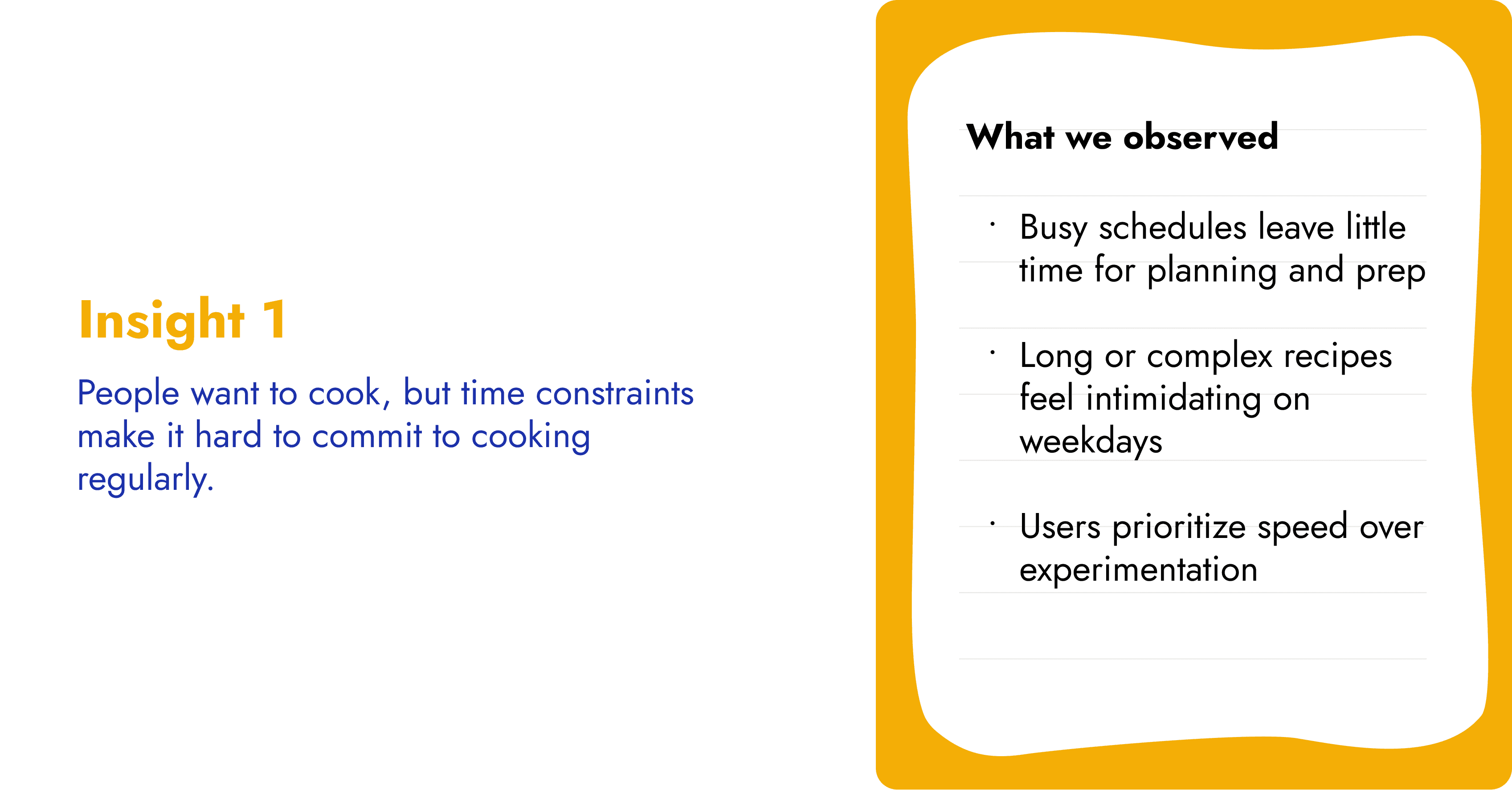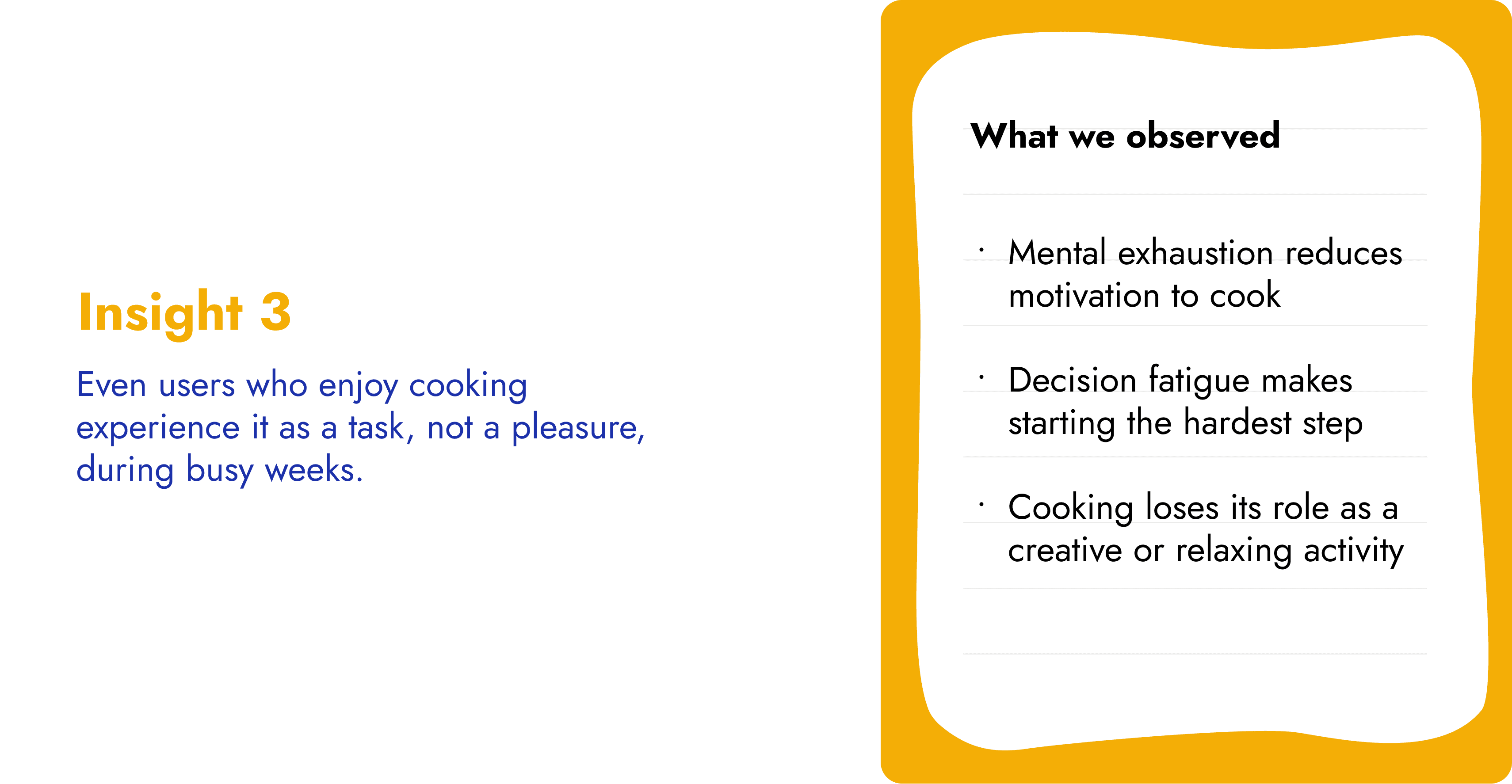 Through interviews and surveys, a different picture emerged. People didn’t lack recipes. They lacked energy, time, and motivation, especially on weekdays.