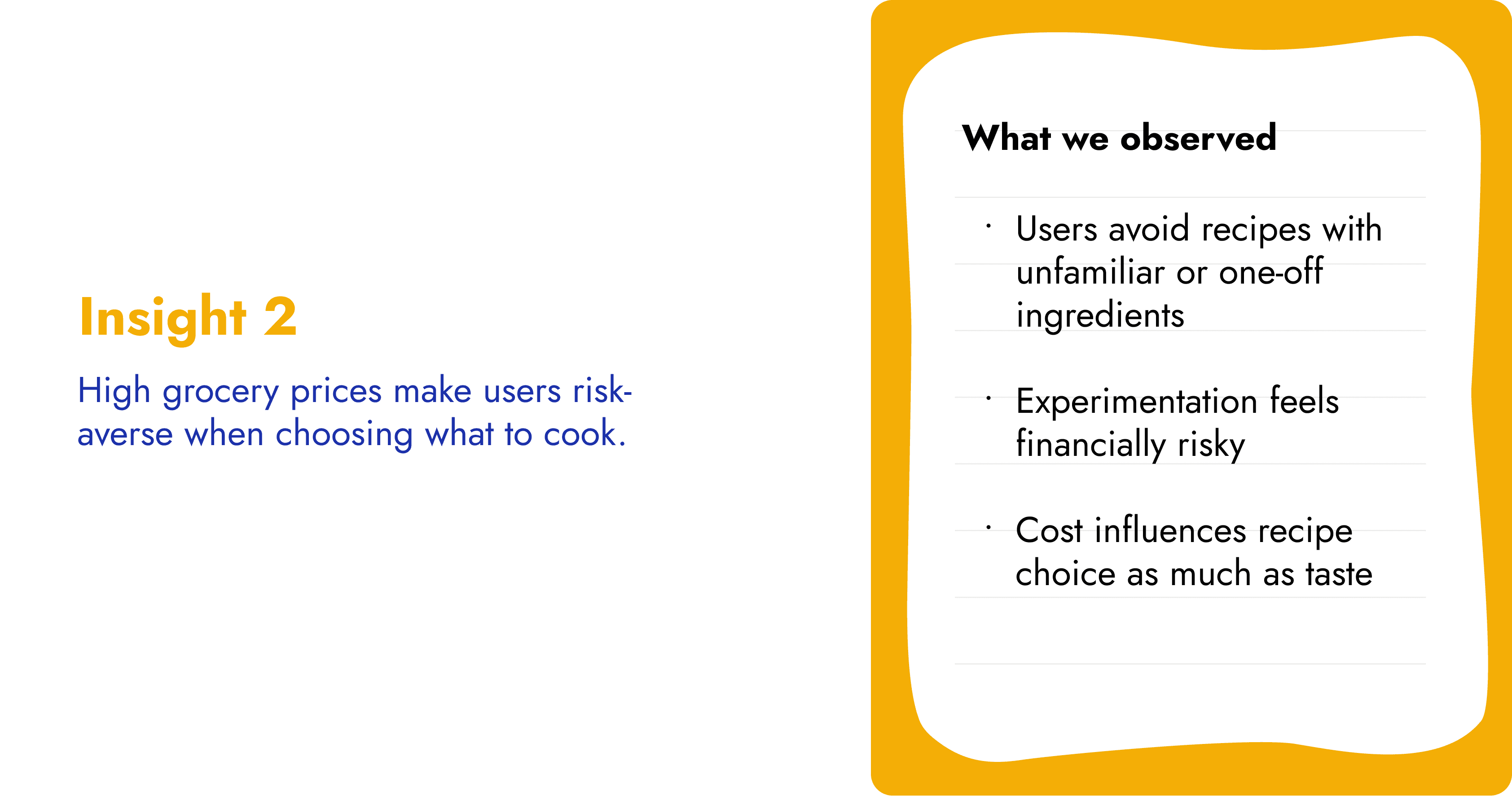 Rather than recipe discovery or storage, three underlying challenges consistently stood out.